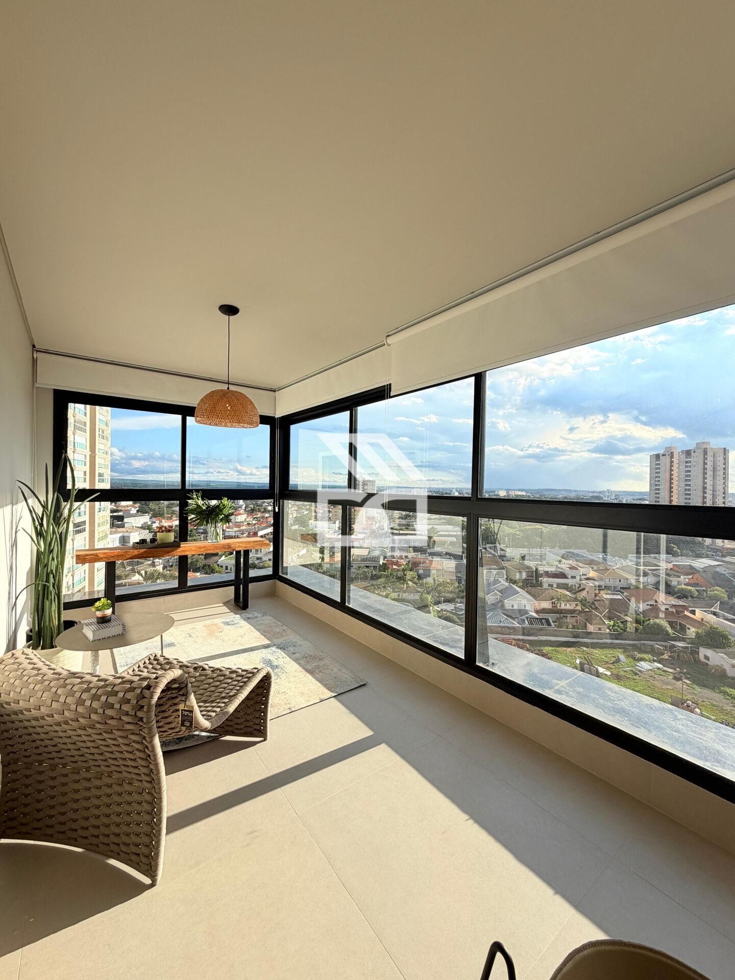 Possui varanda gourmet integrada e envidraçada, sala de estar, lavabo, cozinha espaçosa e área de serviço funcional com despensa.