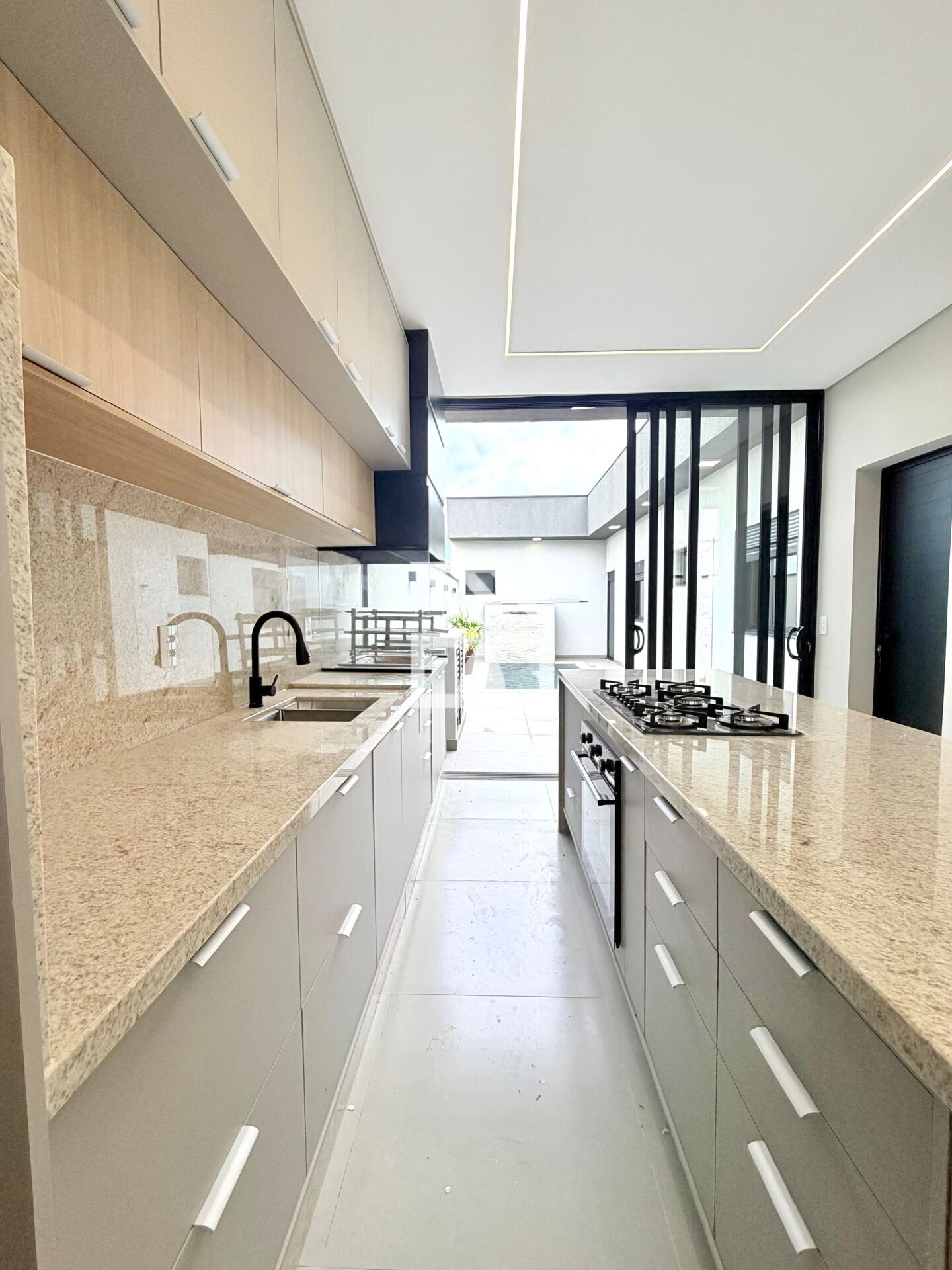 Maravilhosa casa com fachada moderna e ambientes integrados. Destaque para a cozinha com ilha e lindo acabamento!
