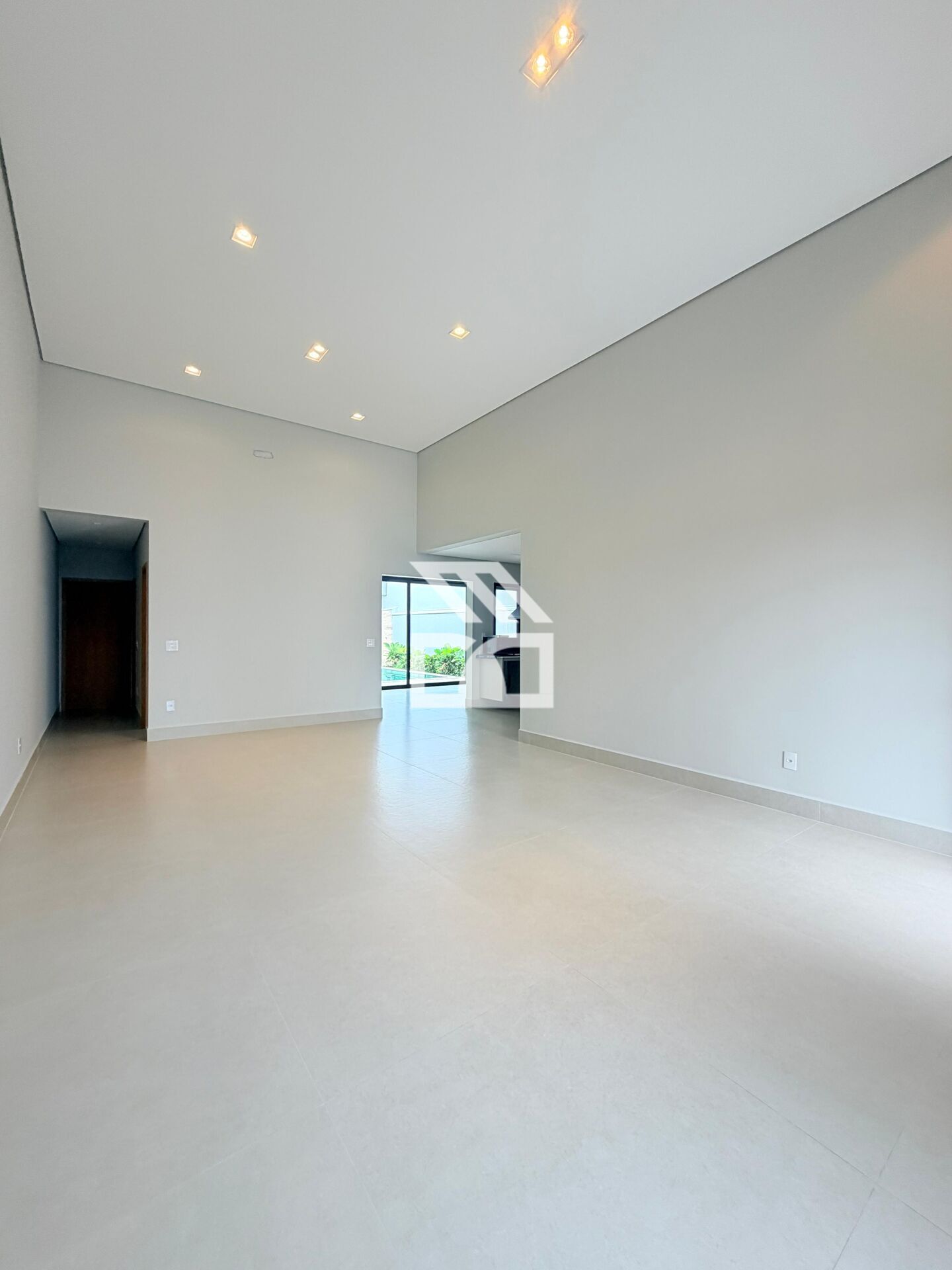 Sala integrada 2 ambientes com pé direito alto