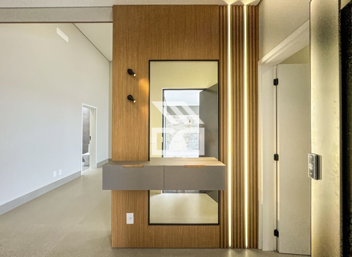 Marcenaria planejada: hall de entrada, sala, escritório, cozinha, área gourmet, closet da suíte master, área de serviço e banheiros;