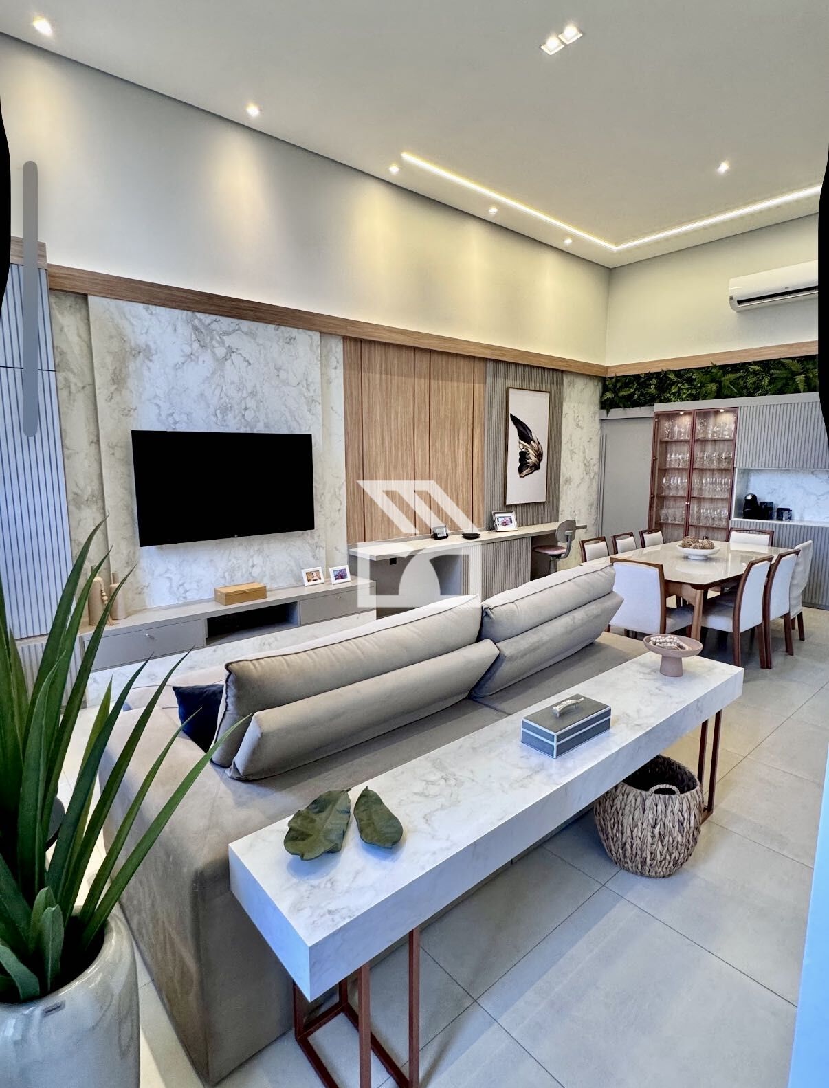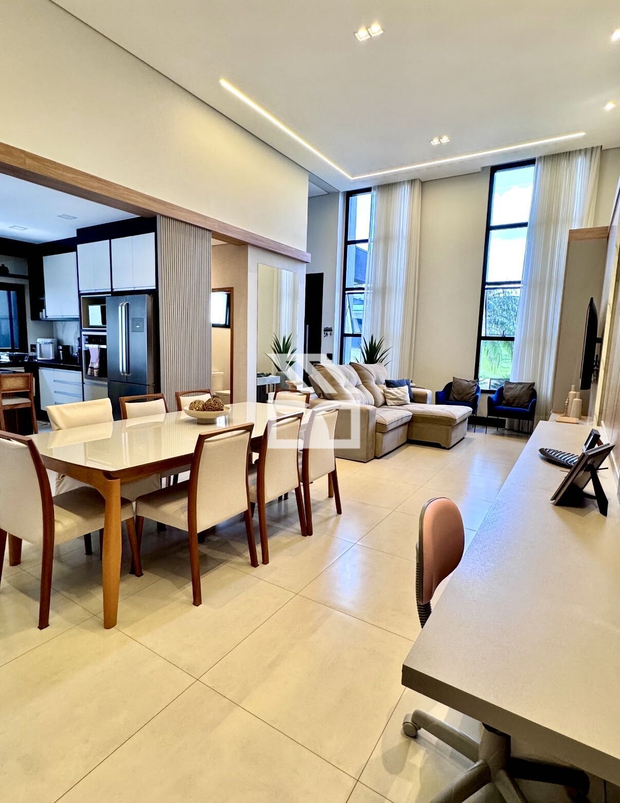 Àrea social em conceito aberto, ampla sala para 2 ambientes
