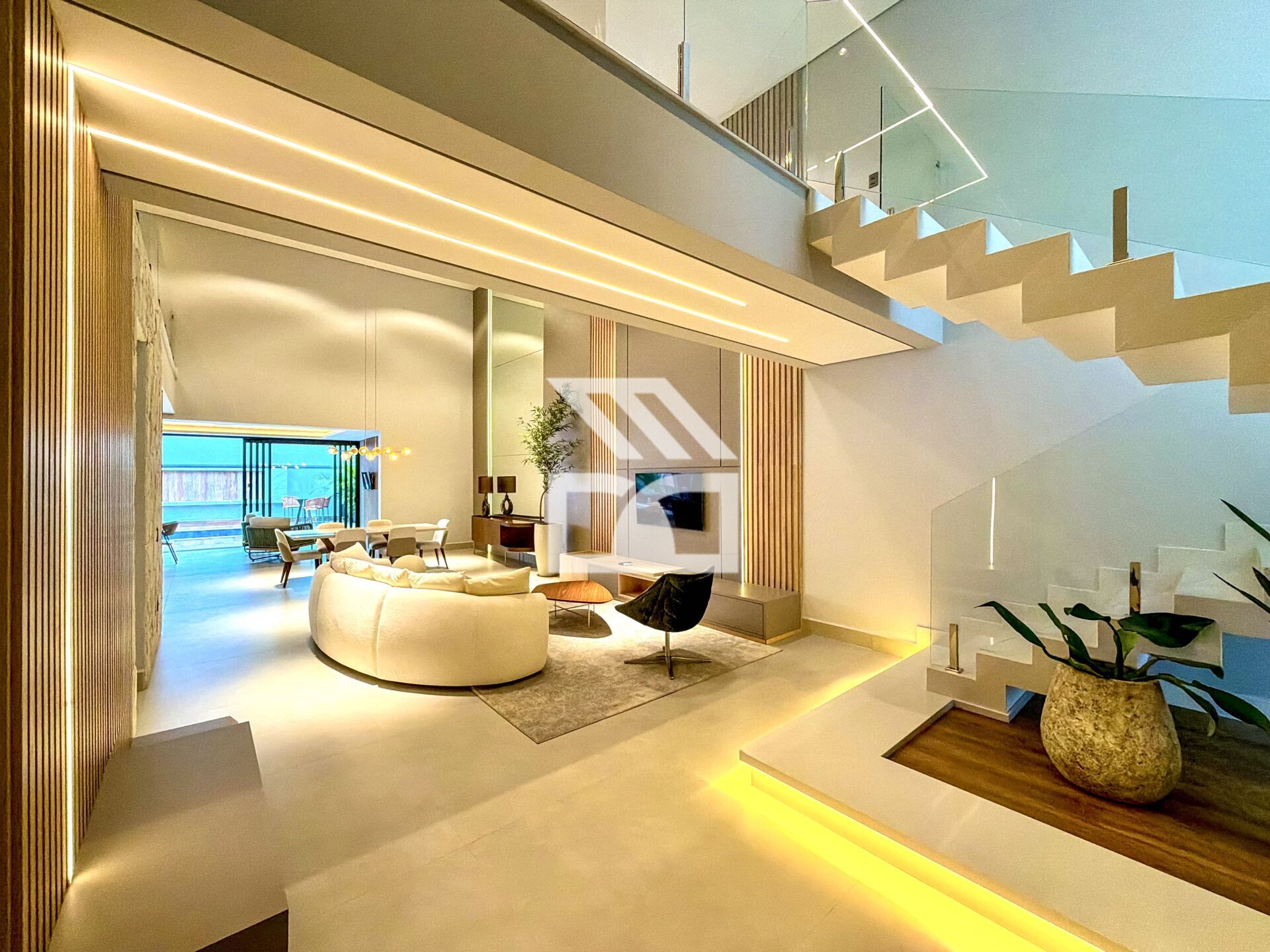 4 suítes, sendo 1 no pavimento inferior e 3 no pavimento superior