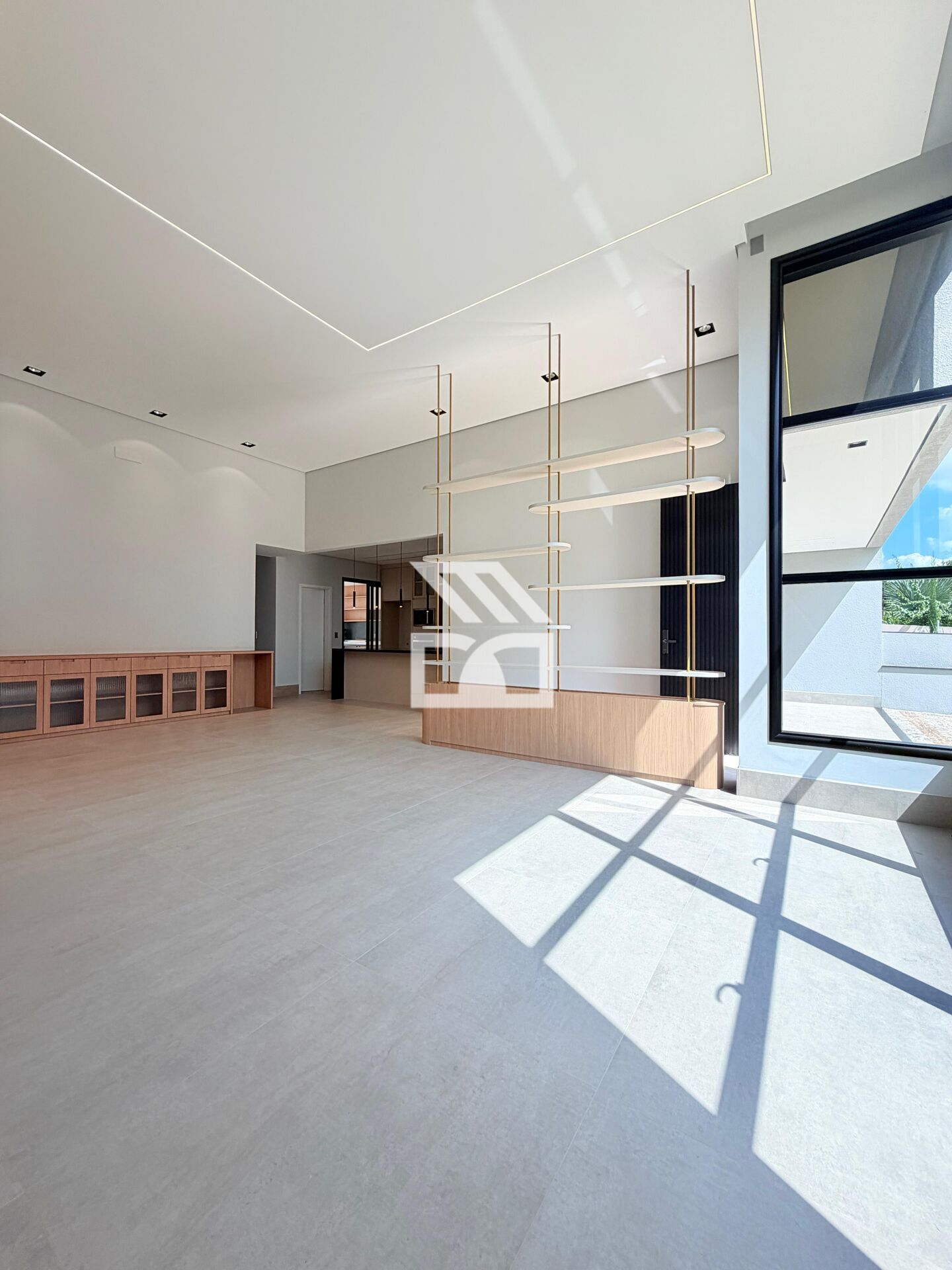 Sala 2 ambientes com pé direito duplo