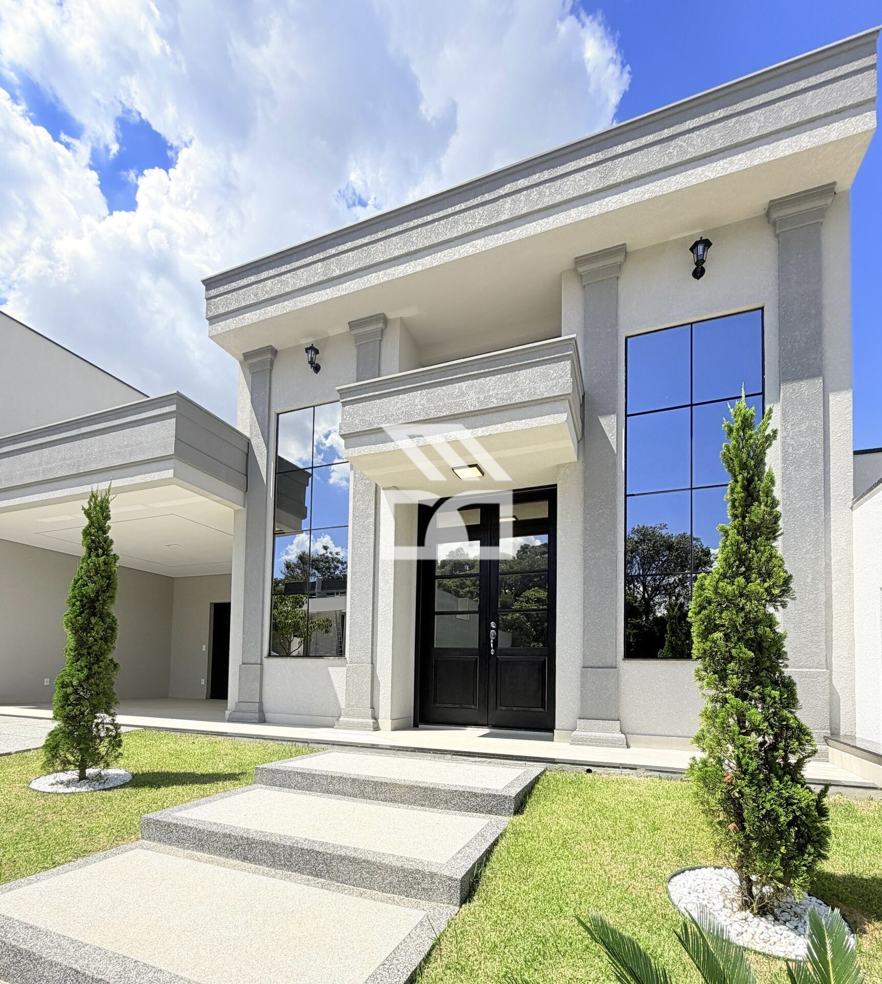 Fachada imponente, com lindo paisagismo e linda porta principal dupla!