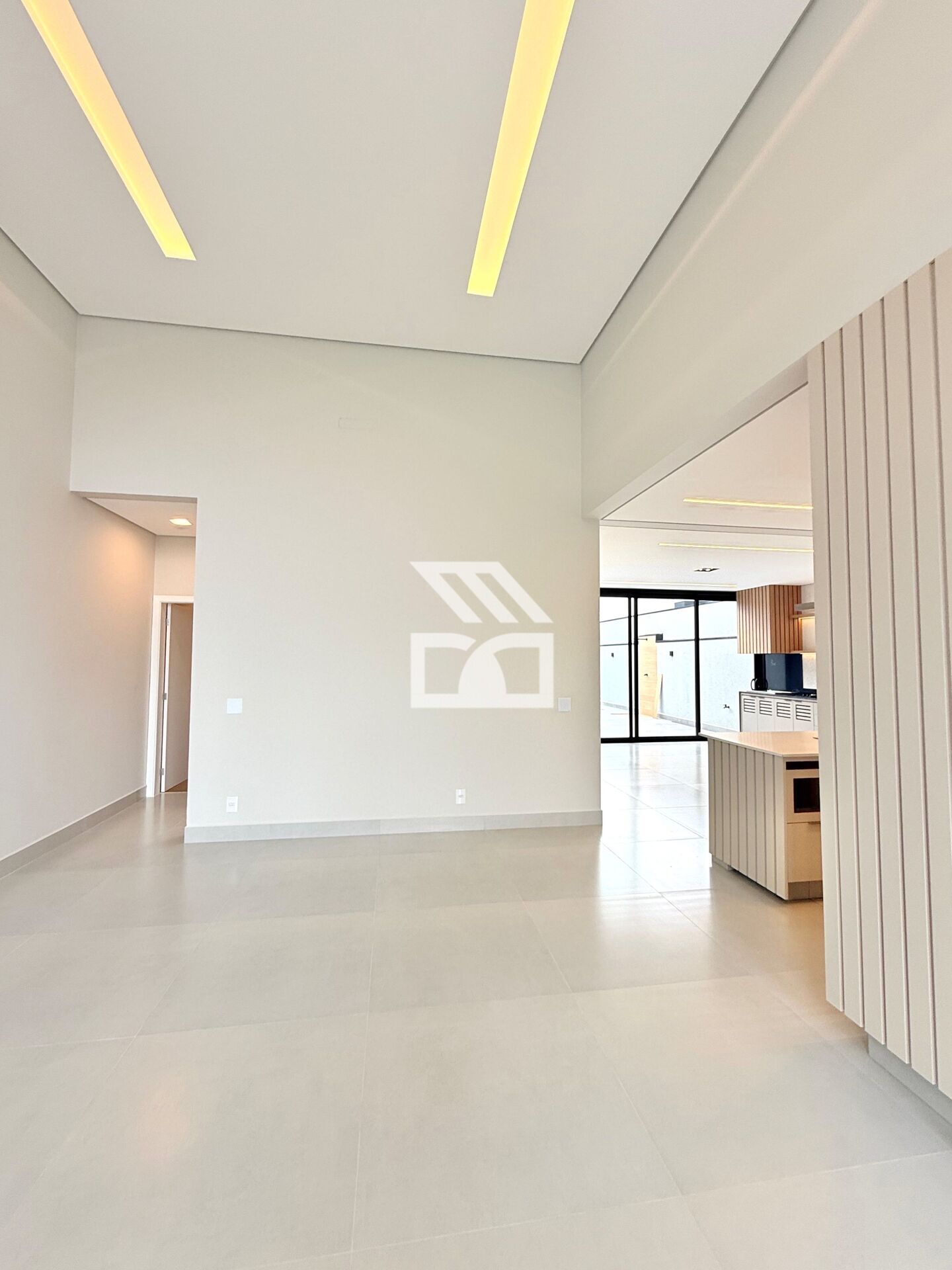 Sala 2 ambientes com pé direito duplo