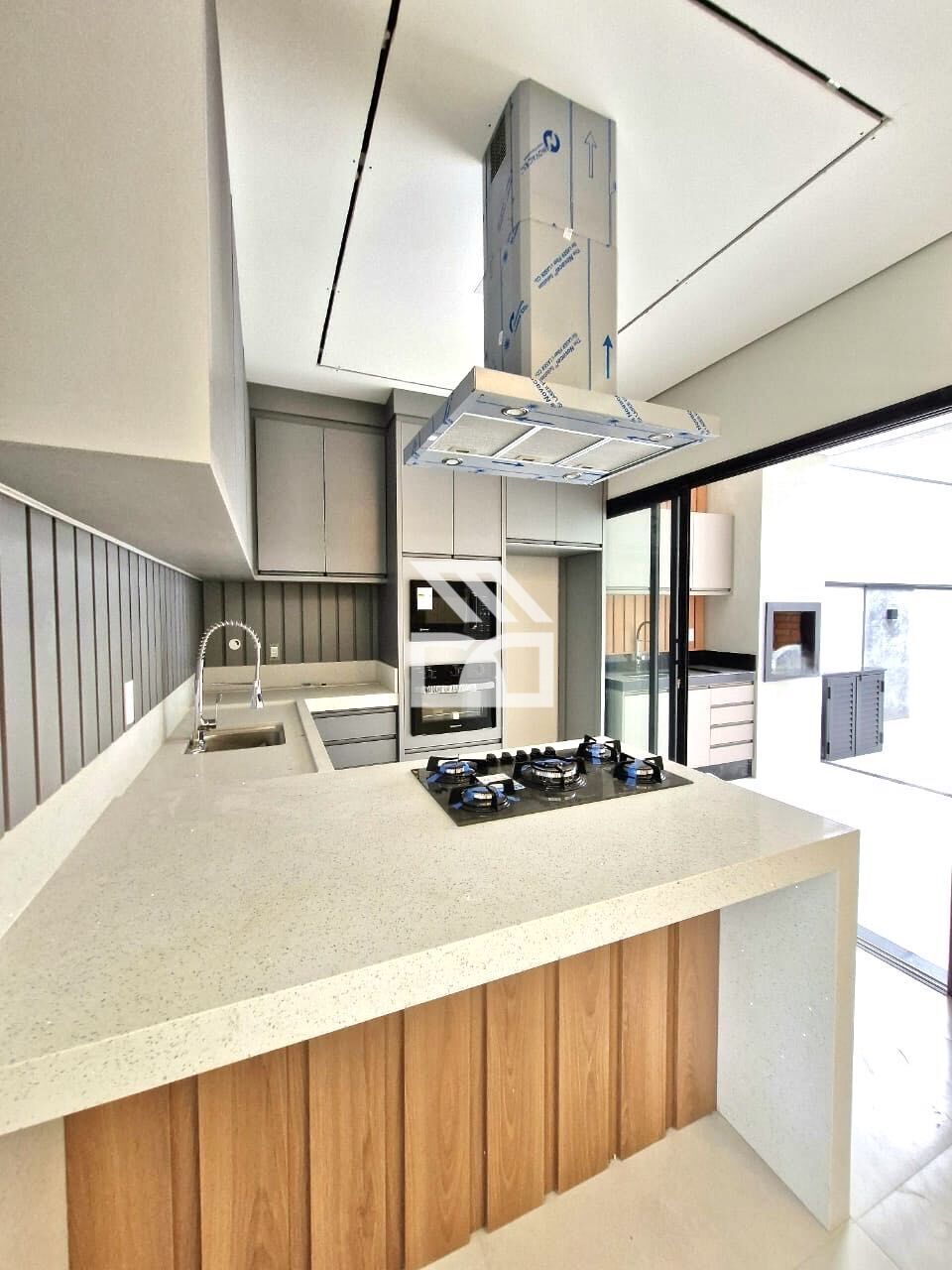 São 3 suítes, área social em conceito aberto, sala com pé direito de 4m, lavabo, cozinha americana equipada com elétros (exceto geladeira e lava-louças), despensa, área gourmet com churrasqueira e amplo quintal.