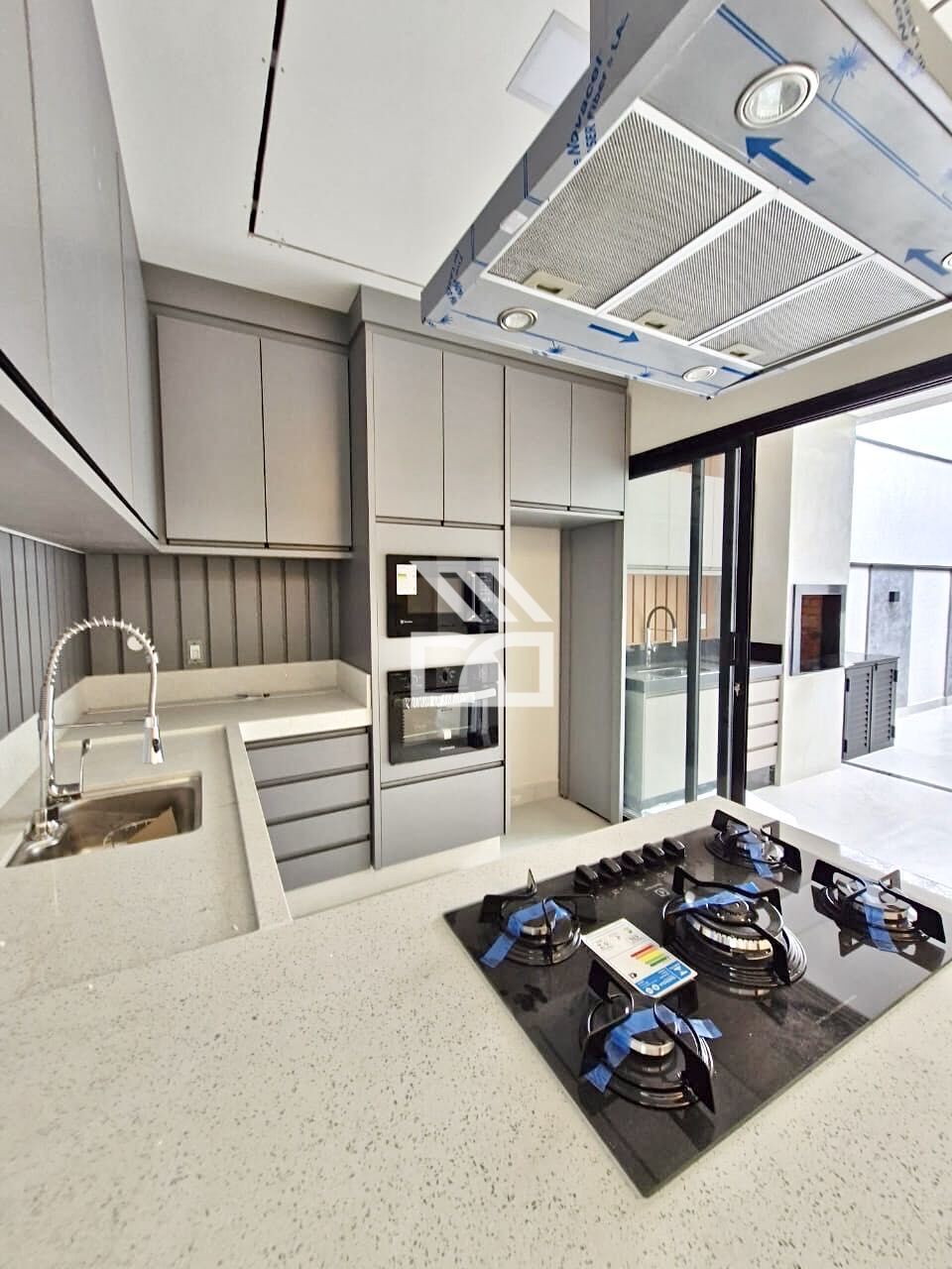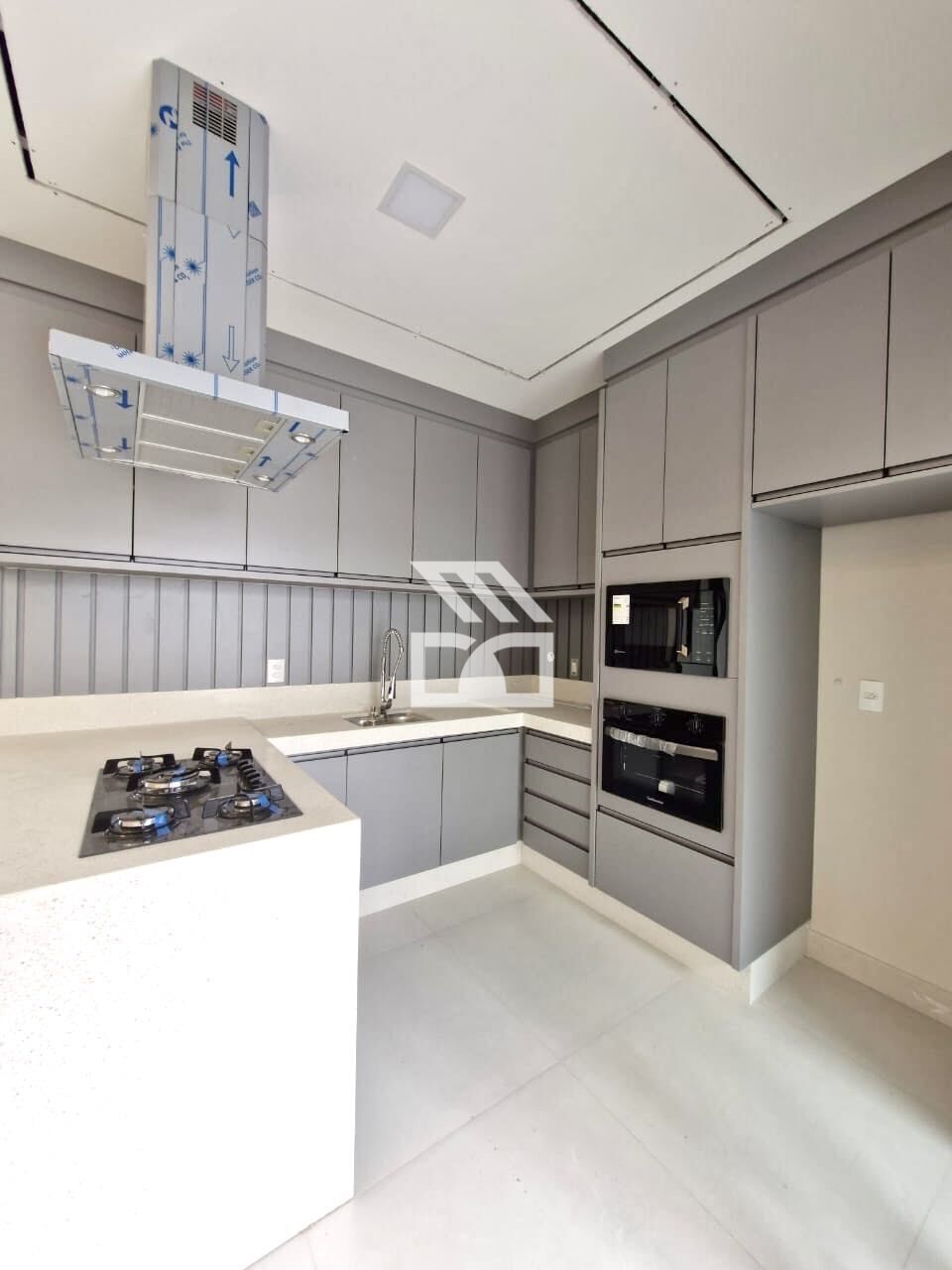 São 3 suítes, área social em conceito aberto, sala com pé direito de 4m, lavabo, cozinha americana equipada com elétros (exceto geladeira e lava-louças), despensa, área gourmet com churrasqueira e amplo quintal.