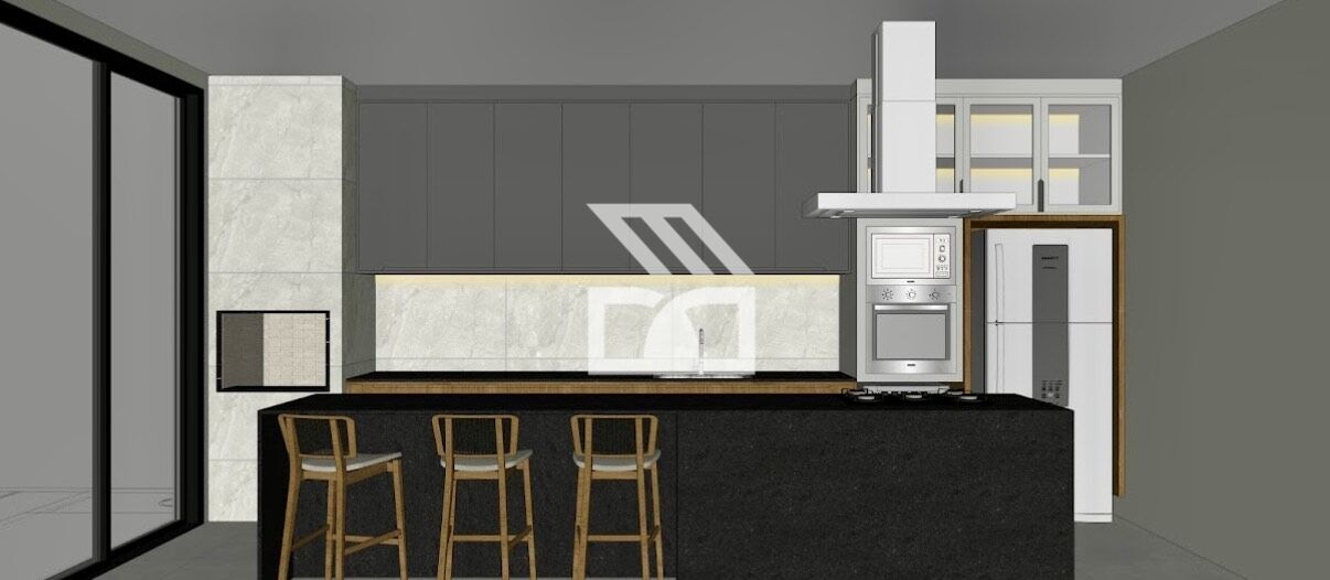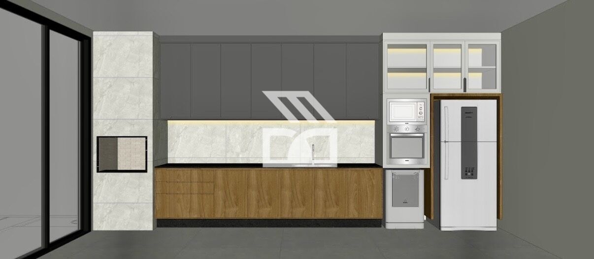 Cozinha e gourmet integrados, marcenaria planejada, equipada com cooktop, forno, coifa e microondas