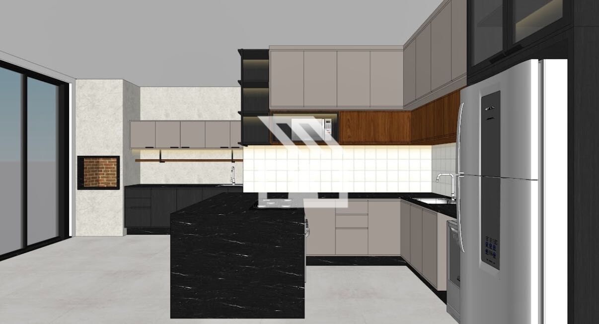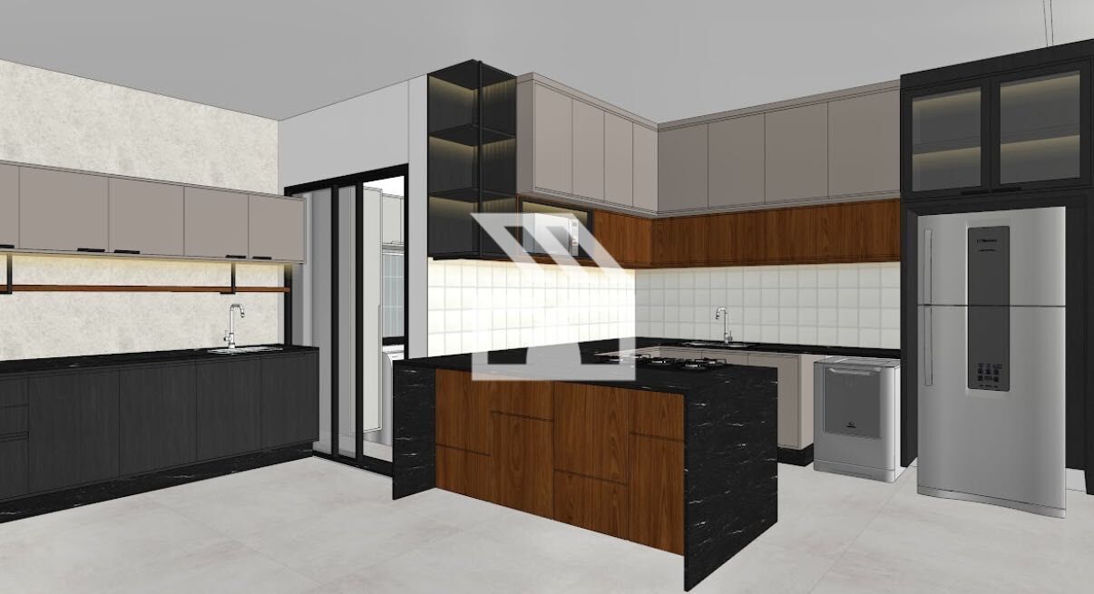 Térrea, com projeto encantador e fachada imponente, são 202 m² AC em terreno de 308 m², composta por 3 suítes (1 master com closet), escritório, lavabo, área social ampla em conceito integrado, sala de estar e jantar com pé direito elevado, cozinha planejada com rica marcenaria, equipada com cooktop e espaço gourmet com churrasqueira.