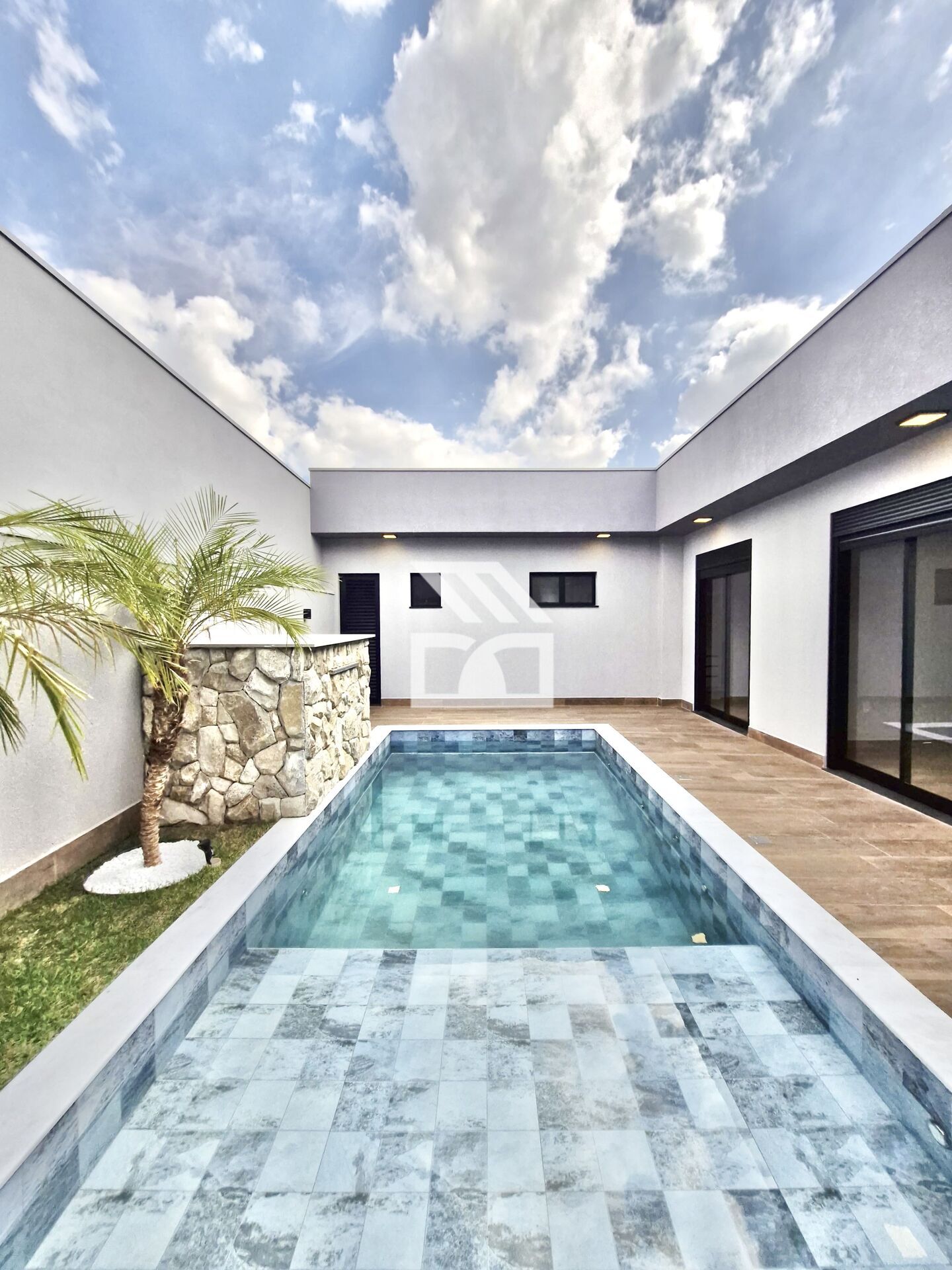 Térrea, com arquitetura contemporânea, 199 m² AC em terreno de 314 m², composta por 3 suítes (sendo 1 com closet planejado), escritório duplo, ampla área social em conceito integrado, sala para 2 ambientes com pé direito elevado, lavabo, cozinha gourmet planejada e equipada com cooktop, forno e microondas, despensa, espaço gourmet com churrasqueira e cooktop, área externa espaçosa, piscina com cascata e lavabo externo.